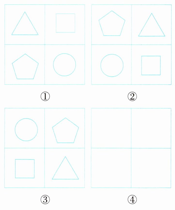 5. 自己按一定的规律设计一组图形,让同学来找一找规律。