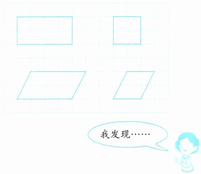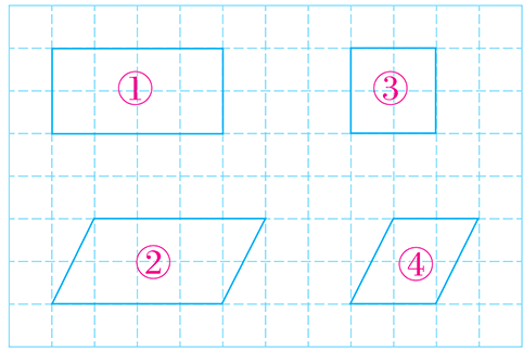 1.计算下面图形的面积,再竖列比较,从中你发现了什么?(每个方格表示1$cm^2$。)