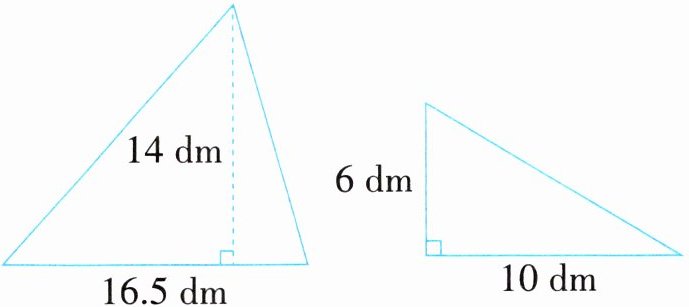 $16.5 × 14 ÷ 2$$= 115.5 (dm^{2})$$10 × 6 ÷ 2 = 30 (dm^{2})$