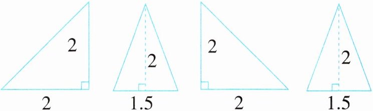 1.下面哪两个三角形的面积和与上面的图形面积一样大?用线连一连。(单位:cm)
