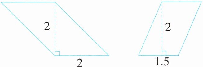 2. 先算出下面每个平行四边形的面积,再算出每个图中涂色部分的面积。(单位:dm)