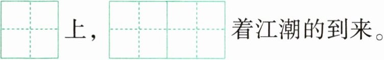 2. 人们站在$\begin{array}{|c|c|}\hline & \\\hline & \\\hline\end{array}\begin{array}{|c|c|}\hline & \\\hline & \\\hline kuān kuò$的$\begin{array}{|c|}\hline \\\hline \\\hline\end{array}\begin{array}{|c|}\hline \\\hline \\\hline dà\begin{array}{|c|}\hline \\\hline \\\hline\end{array}\begin{array}{|c|}\hline \\\hline \\\hline dī$上$,\begin{array}{|c|c|}\hline & \\\hline & \\\hline\end{array}\begin{array}{|c|c|}\hline & \\\hline & \\\hline pàn wàng$着江潮的到来。
