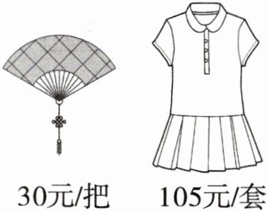 1. 一套衣服和一把扇子的单价和:$105 + 30 = 135$(元)