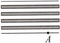 小明在游泳池的 $ A $ 点处游泳,如果他想尽快上岸,他应该选择怎样的路线游呢?请你在图中画出来。