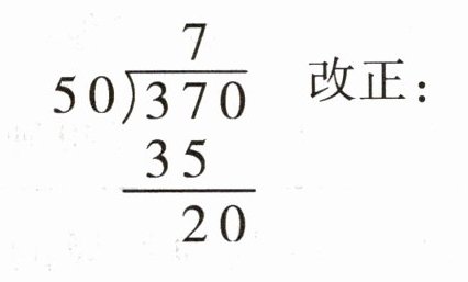 $\begin{array}{r} 7 \\ 50\enclose{longdiv}{370} \\ 35 \\ \hline 20 \end{array} $ 改正: