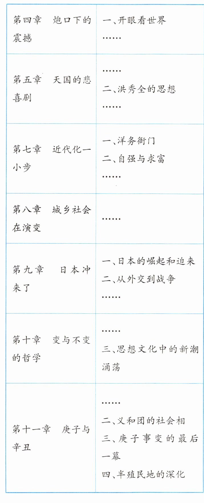 (1)第五章:太平天国运动;第七章:洋务运动。