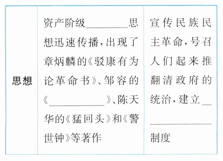 (1)革命 革命军 民主共和 孙中山