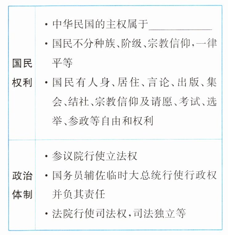 (4) 意义:肯定了资产阶级民主共和制度和民主自由原则,是辛亥革命的重要成果。