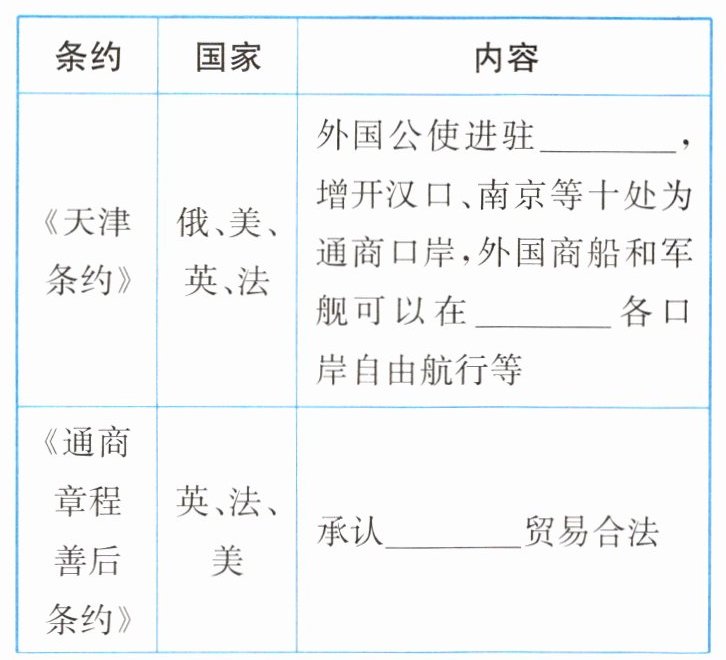 》《通商章程善后条约》(1858年)→再次占天津(1860年)→攻进北京、火烧圆明园(1860年)→控制北京城,签订《北京条约