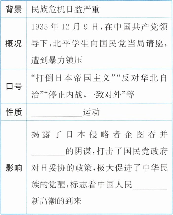 1.爱国救亡 华北 抗日救亡民主运动 2.