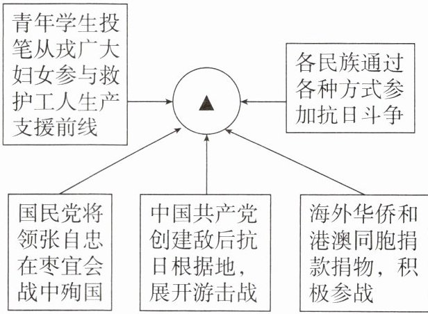 2. (2024·江苏连云港中考)1938年广州、武汉相继失守后,许多音乐工作者转入敌后或大后方,创作了《游击队之歌》《八路军进行曲》等作品,之后这些作品被广大军民传唱。这反映了(