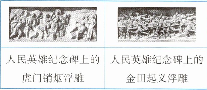 D 解析:虎门销烟浮雕反映的是虎门销烟,金田起义浮雕反映的是太平天国运动,二者皆为中国近代史上人民反抗外来侵略或国内压迫的事例,表现了中国人民的抗争精神,因此其共同主题为“中国人民的抗争”,D项正确。