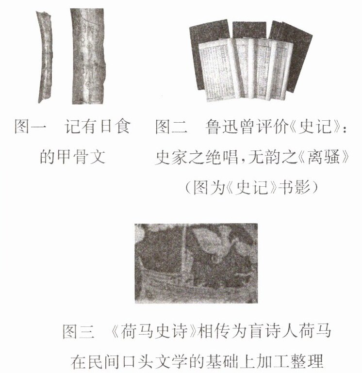 (2)图一:甲骨文是我国信史的开始;图二和图三:都带有强烈的文学色彩。