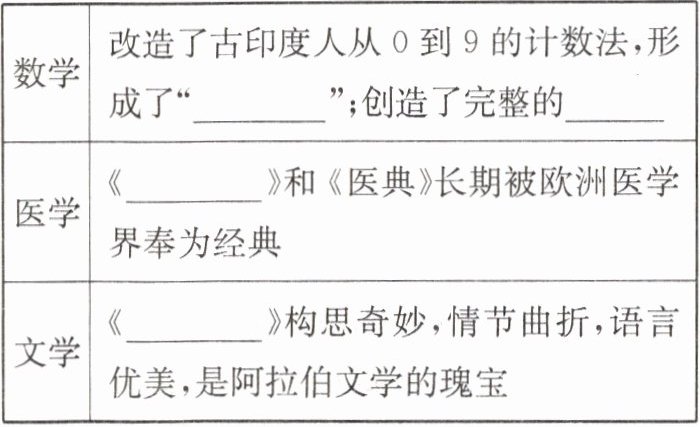 (3)在吸收、消化外来文化的基础上,阿拉伯人创造了有自己特色的阿拉伯文化。