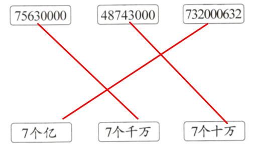 4. 每个数中的“7”分别表示什么?(连一连。)