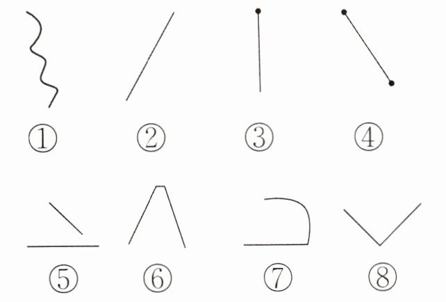 (1)在图形①~④中,由线段、直线、射线都是直的,排除____