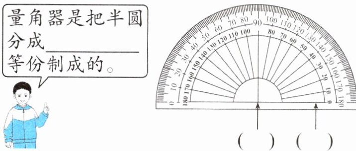 (2)角的另一条边所对的量角器上的刻度,就是这个角的