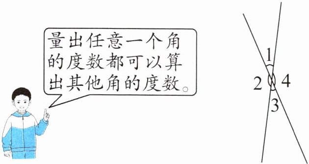 4. 试一试:下图中只量一个角的度数,你能说出其他三个角各是多少度吗?