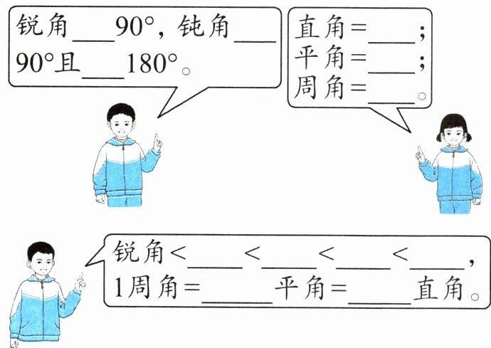 2.小于 大于 小于 90° 180° 360° 直角 钝角 平角 周角 2 4