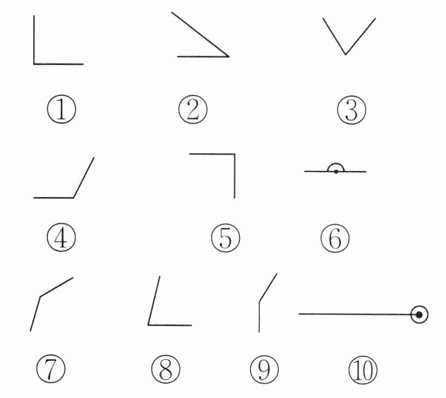 ∠1是(周角) ∠2是(锐角)∠3是(钝角) ∠4是(平角)