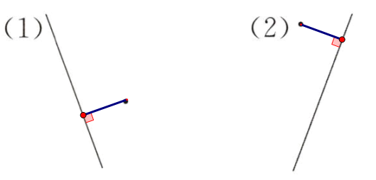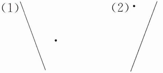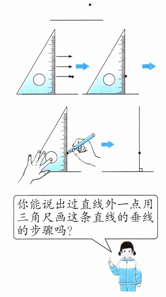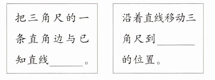 2.过直线外一点,用三角尺画这条直线的垂线的步骤: