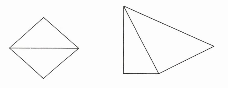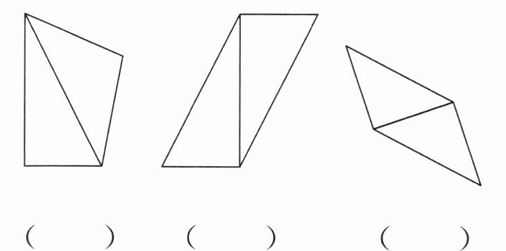 3. 在下面两个三角形拼成的图形中,哪些是平行四边形?在是平行四边形的下面画“√”。