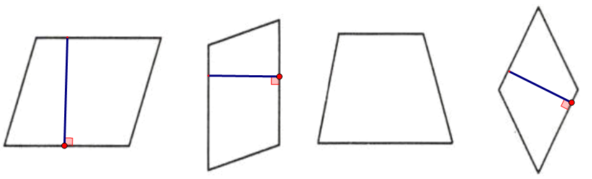1. 下面哪些图形是平行四边形?画出每个平行四边形的高。