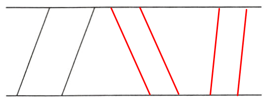6. 照样子,在下面的两条平行线之间画几个不同的平行四边形。观察一下,这些平行四边形有什么共同点?