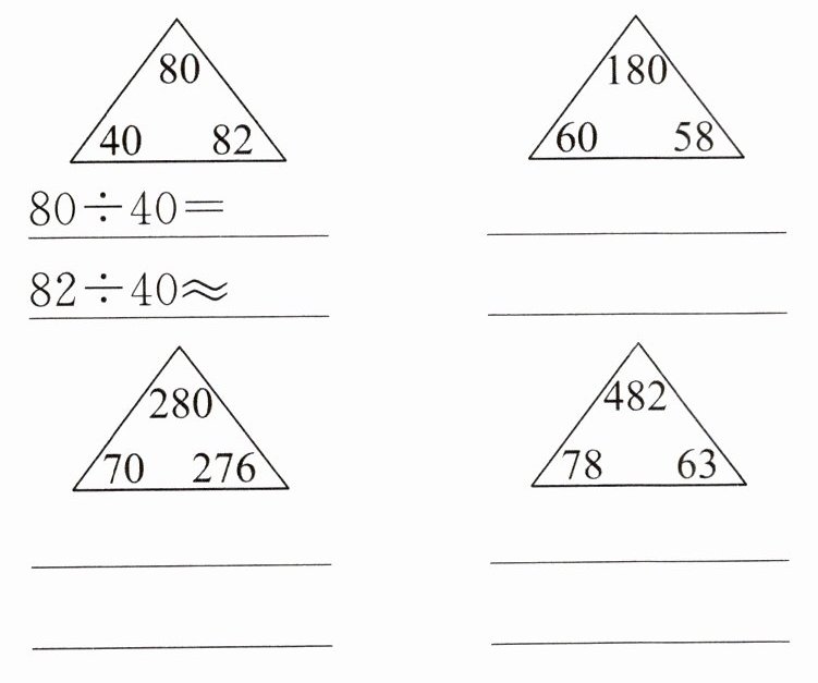 2 2 180÷60=3 180÷58≈3 280÷70=4 276÷70≈4 482÷78≈6 482÷63≈8