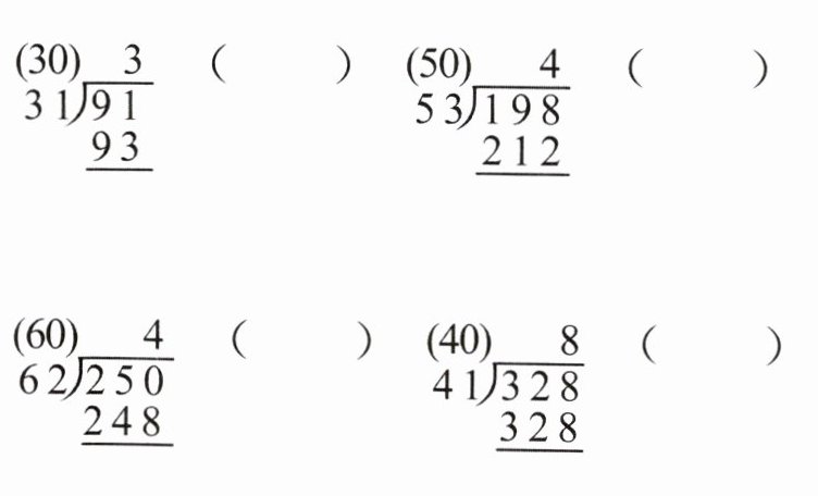 2. 根据试商的情况,快速说出准确商,填在( )里。