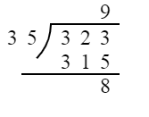 323÷35=9……8