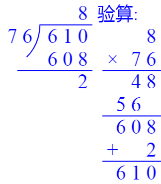 610÷76=8……2