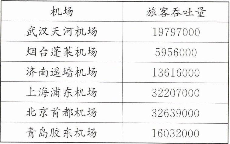 下面是某年我国几个机场的旅客吞吐量(单位:人次)。你能把六个机场的旅客吞吐量从小到大排一排吗?
