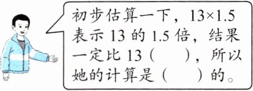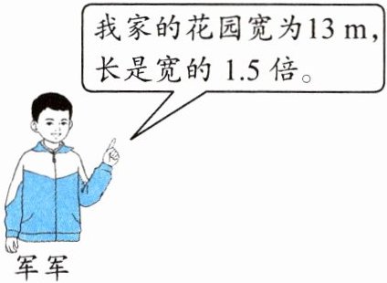 1. 想一想:求军军家花园的长是多少,就是求 $ 13 $ m 的 $ 1.5 $ 倍是多少,列式: