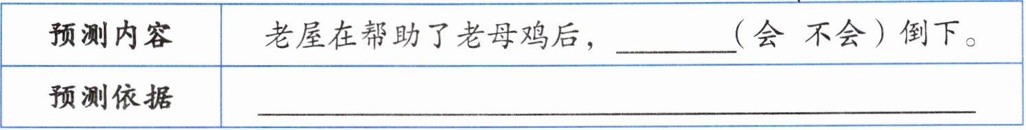 3. 不会;从前面老屋帮助小猫、老母鸡可以看出老屋很善良,有爱心,它可能还会继续帮助其他小动物,所以不会倒下。