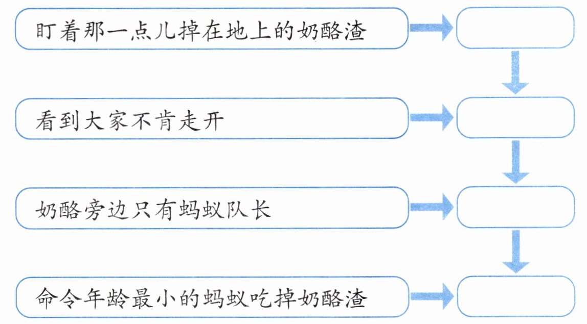 D. 蚂蚁队长把奶酪渣给最小的蚂蚁吃,这种处理方式公平公正,大家很佩服它。
