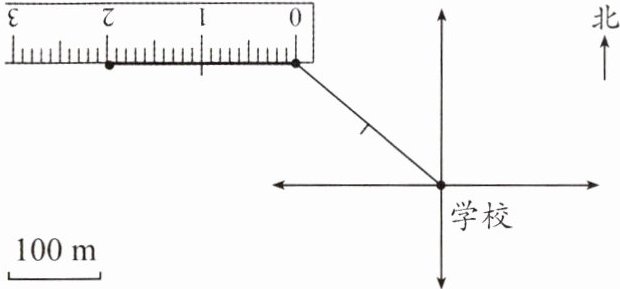 先确定 $1$ 格代表 $100$ m。如图画出(