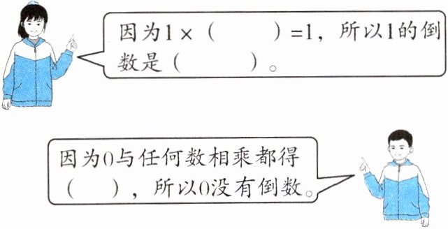 )是 1 的两个数互为倒数。例如:$\frac{2}{3}和\frac{3}{2}$互为倒数,就是指$\frac{2}{3}$的倒数是($\frac{3}{2}$