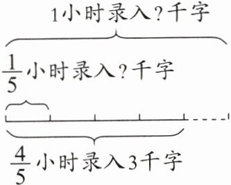 先求$\frac{1}{5}$小时录入多少千字,也就是求$3的\frac{1}{4}$,即$3 × \frac{1}{4}$;再求$5个\frac{1}{5}$小时录入多少千字,即$3 × \frac{1}{4} × 5$。