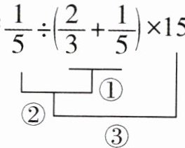 例:$\frac{1}{5}÷ (\frac{2}{3}+\frac{1}{5})× 15$