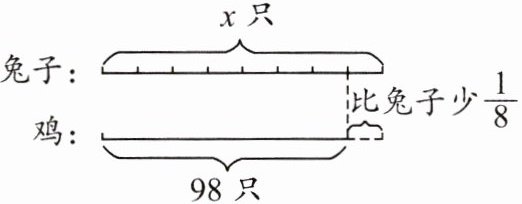 (2)等量关系式:兔子的只数-鸡比兔子少的只数 = 鸡的只数。