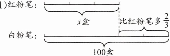 (1)等量关系式:红粉笔的盒数+白粉笔比红粉笔多的盒数 = 白粉笔的盒数。