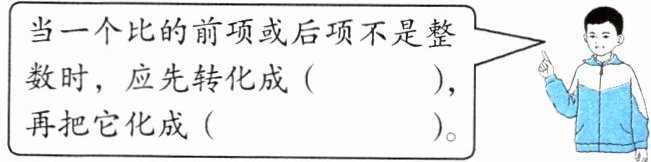 当一个比的前项或后项不是整数时,应先转化成$(\quad)$,再把它化成$(\quad)$。