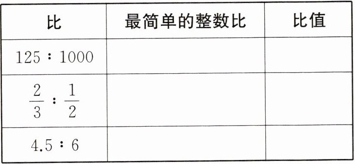 (3)火车$4小时行驶了600$km,路程和时间的最简单的整数比是( ),比值是( )。