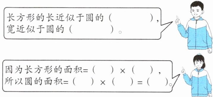 )。(2) 拼成的近似长方形与圆的周长、半径有什么关系?