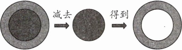 从一个较大的圆里面减去一个较小的同心圆,得到圆环。