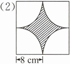 边长为$8\ cm$的正方形内四个角分别以正方形的顶点为圆心,以正方形边长的一半为半径画圆弧,四个圆弧围成的图形以及正方形内除去四个扇形的部分形成的阴影部分。