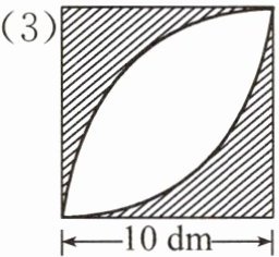 边长为$10\ dm$的正方形,以正方形的右下角为圆心,以正方形的边长为半径画圆弧,圆弧与正方形的左边和上边围成的图形为阴影部分。