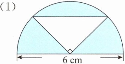 直径为$6\ cm$的半圆内有一个三角形,三角形的底边长与半圆的直径重合,顶点在圆弧上,半圆内除去三角形的部分为阴影。