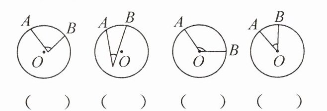 2. 下面图形中哪些角是圆心角?在( )里画“√”。